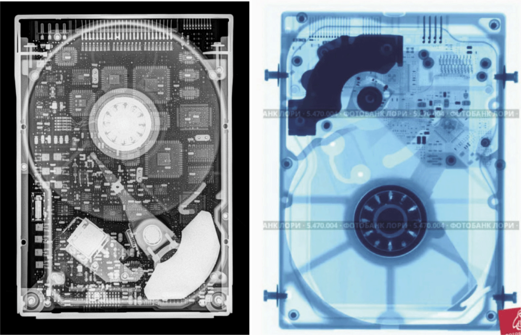 При срабатывании СУР или выявлении ДЛТО признаков фальсифицированных товаров, им может быть назначен таможенный контроль в форме таможенного досмотра. Стоит отметить, что для проведения таможенного досмотра в таможенных органах имеются все необходимые технические средства таможенного контроля, в частности рентгеновские аппараты, на которых можно проверить наличие внутренних деталей жестких дисков (рис.2). Данная мера требует затрат времени и технических ресурсов, поэтому, если ДЛТО ошиблось и не выявило фальсификат, его могут обвинить в непрофессионализме.